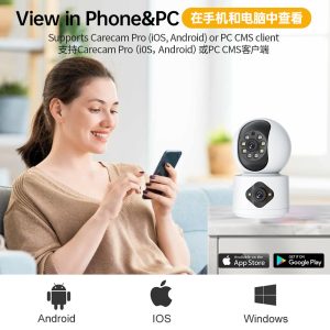4MP Carecam/YiLot/Yoosee/O-Kam APP Dual Lens Full Color PTZ IP Dome Camera AI Humanoid Detection CCTV Baby Monitor
