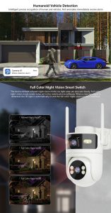 Equipped with two fill lights (infrared + white light), enhancing night vision clarity by 50% for sharp imaging even in low-light or dark environments.